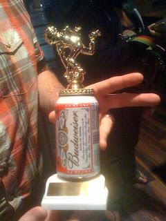 And kevin was telling me this is one of the most balanced meals a man Can eat. A burnt hot dog, nacho chili cheese fries, lays potato chips and a beer on the side. Courtesy of the bowling alley concession stand! CHEERS!!!